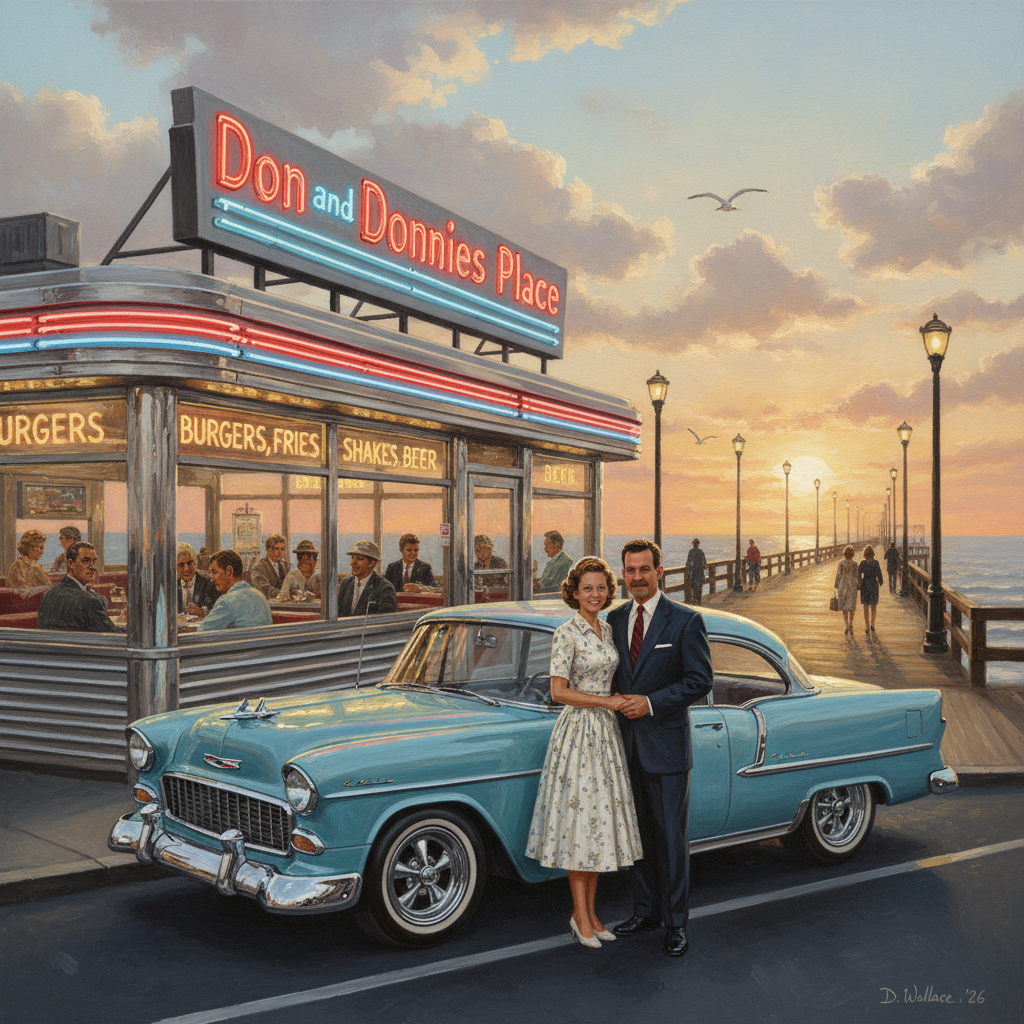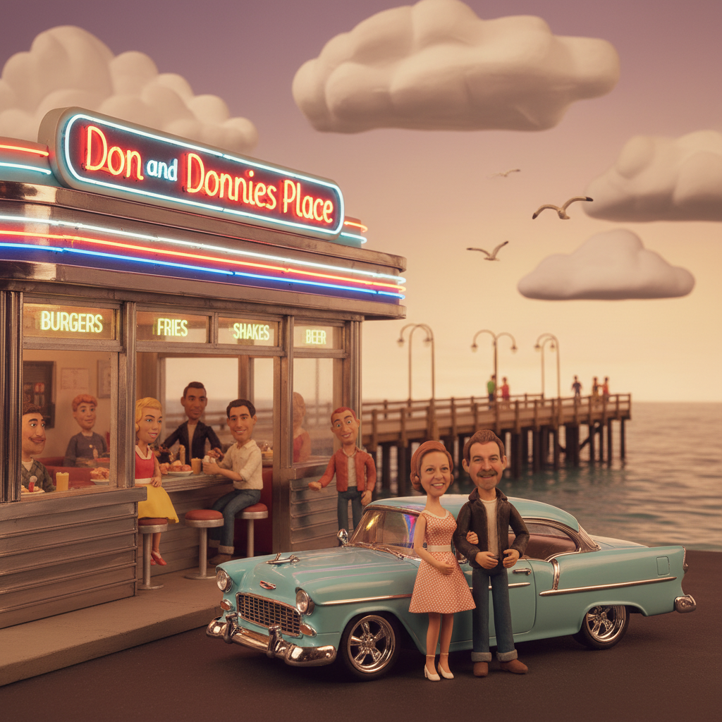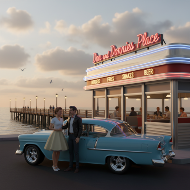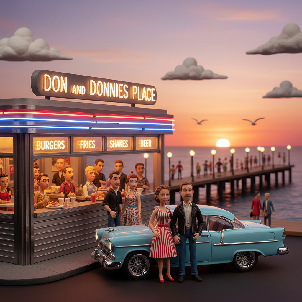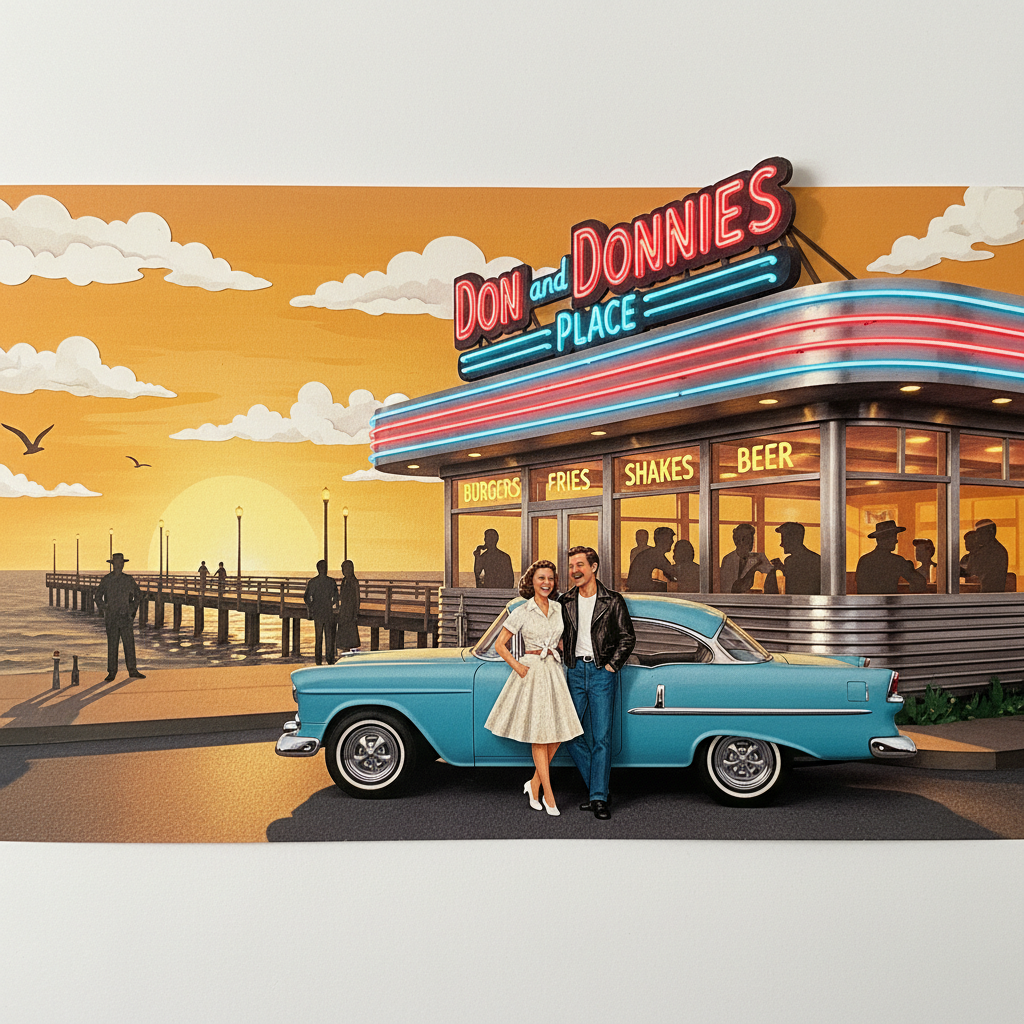 These are images created in Lunera. One theme, in particular, is repeated ad-nauseum, but I was testing the same basic design prompt through different base styles the app has. That's right, the same prompt was used to create all the diner scenes, but the image is completely different just by changing the base style choice in that pull down menu. There are hundreds of base styles to render in-this makes it so very easy to experiment with design variations in an instant. Imagine what you can create for your customers, any imagery on a shirt or other merchandise and processed in minutes, not hours. Or imagine the fun you will have creating custom birthday cards or other items for your loved ones or your self. Got a big event coming up, make custom shirts or other merchandise for that event and place your participants faces on their own swag. This is a great super customizable tool for prompt and graphic creation for sales promotions, merchandizing, web design, or just fun. You can place anyone or anything in any photo, either real, or created with Lunera and its cloud based rendering with Nano Banana, and local rendering with ComfyUI for image creation and face swaps.